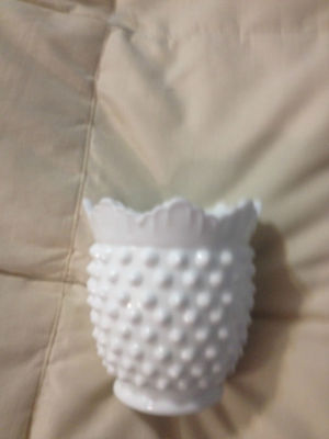 Title (ebay affiliate link): VINTAGE STAMPED WHITE FENTON MILK GLASS CACTUS HOBNAIL SCALLOP TRIM VASE BOWL