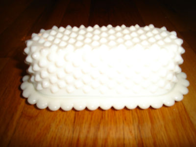 Vintage Fenton Hobnail Milk Glass Butter Dish