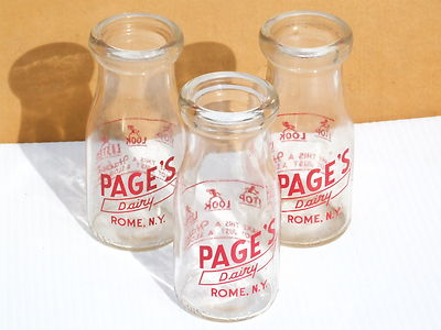 Title (ebay affiliate link): 3 VINTAGE PAGE'S DAIRY 1 PINT GLASS MILK BOTTLES (Rome, NY)
