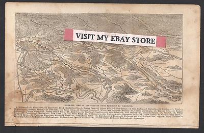 Original Civil War 1863 print BIRDS EYE VIEW OF RICHMOND TO YORKTOWN
