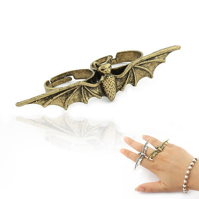 Title (ebay affiliate link): R1018 Antique Bronze Vintage Style Bat Two Fingers Double Rings adjustable