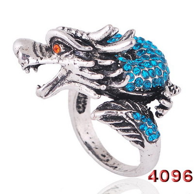 Title (ebay affiliate link): Blue Ring Roaring Dragon Artificial Diamond Retro Feel #8 Silver Antique Plated