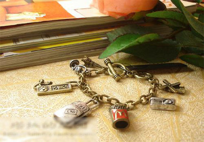 Title (ebay affiliate link): B1079 Vintage Antique Bronze Castle windmill camera Globe Tower Pendant Bracelet