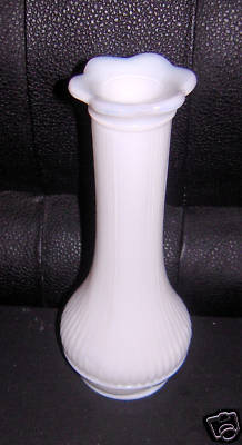 Milk Glass Bud Vase Ribbed Flower Top Unique 6 1/4"