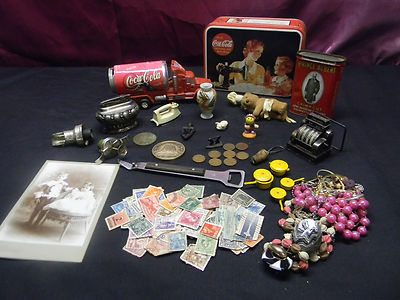 Title (ebay affiliate link): Vintage Junk Drawer Lot! Coca-cola, wheat pennies, photo, lighter, collectables
