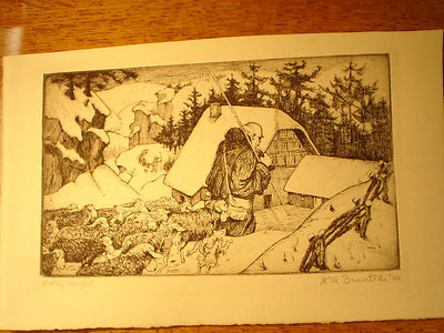 Title (ebay affiliate link): HAL BRUNTSCH ETCHING PRINT HOLY NIGHT CHRISTMAS SHEPHERD SHEEP SNOW WINTER