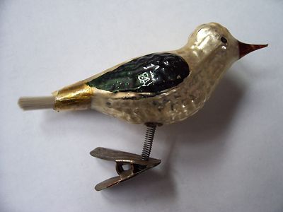 VINTAGE MERCURY GLASS BIRD ON A CLIP