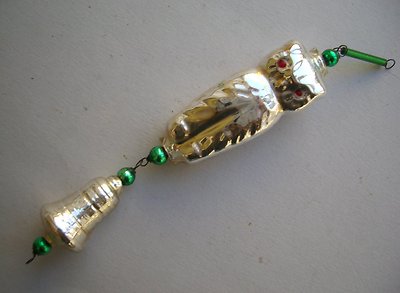 OLD MERCURY OWL WITH BELL CHRISTMAS ORNAMENT
