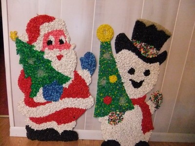 Title (ebay affiliate link): 2 VINTAGE CHRISTMAS SANTA & SNOWMAN MELTED PLASTIC POPCORN DECORATIONS *See Pics
