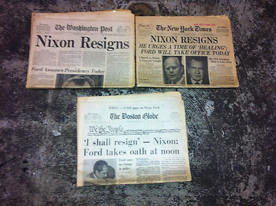 Nixon Resignation Newspapers, August 9, 1974, Wash Post, NY Times, Bos Globe