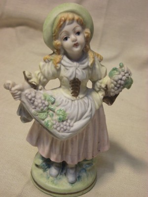 Title (ebay affiliate link): Vintage Saji Fancy China Figurine Girl Carrying Grapes made In Occupaied Japan