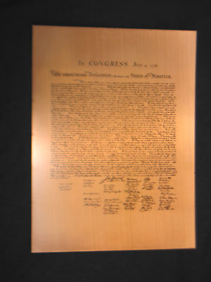 Engraved Historical Memorabilia Copper Plaque Declaration Of Independence