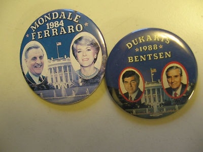 Title (ebay affiliate link): 1984 Mondale/Ferraro & 1988 Dukakis/Bentsen President Campaign Buttons/Pinbacks