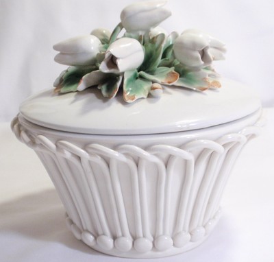 Title (ebay affiliate link): CAPO DE MONTE CAPODIMONTE TULIPS WHITE LIDDED BOWL/BOX