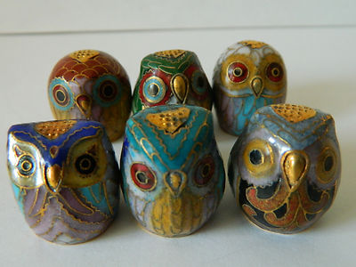 Title (ebay affiliate link): Chinese Old Export Cloisonne Enamel Set of 6 Owl Head Shape Thimble/Thumbstall