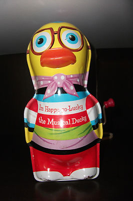 Title (ebay affiliate link): GC Vintage Wind-up Tin Toy I'm Happy go Lucky Musical Ducky ~ Dated 1953