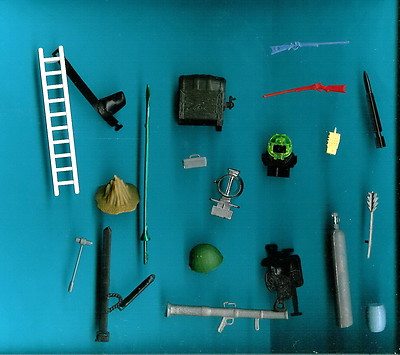 20 VINTAGE PLAY SET ACCESSORIES=MARX,MPC+ BAZOOKA,BARREL,HELMETS,LANCE,ETC