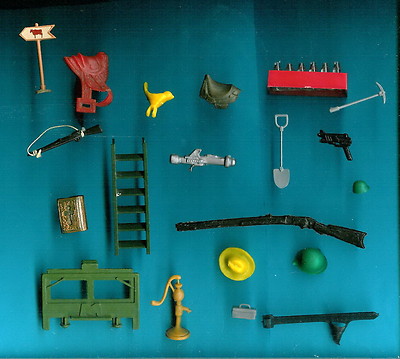 Title (ebay affiliate link): 20 VINTAGE PLAY SET ACCESSORIES=MARX,MPC+ CASE OF POP OR BEER,BIBLE,ETC