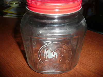 Title (ebay affiliate link): Red Lidded Glass Coca Cola Jar By Anchor Hocking