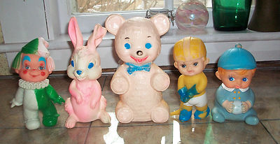 Vintage Rubber Squeaky Toys Lot of 5 1964 7"-5"