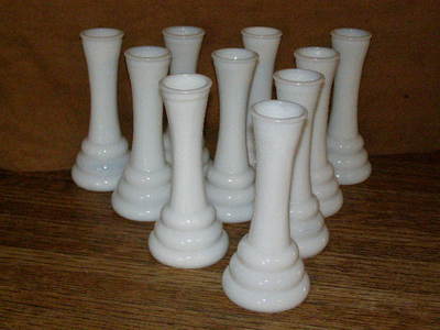 Title (ebay affiliate link): LOT 10 VTG SAME WHITE MILK GLASS BUD VASE WEDDING PARTY SHOWER RANDALL DONUT 6"
