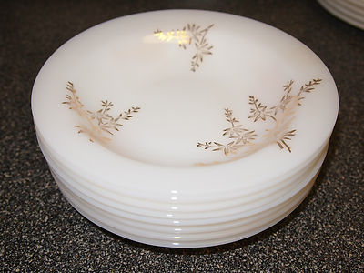 Title (ebay affiliate link): Set of 8 Vintage Federal Glass Golden Glory 8" Salad plates Milk Glass