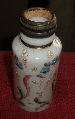 Title (ebay affiliate link): Special Antique Handpainted White Milk Opaque Glass Jar ~Dainty Violets & Posies
