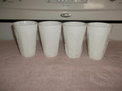 Title (ebay affiliate link): ~4~VINTAGE~INDIANA~COLONY HARVEST GRAPE MILK GLASS TUMBLERS~8 OZ~