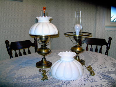 Title (ebay affiliate link): ANTIQUE VINTAGE METAL BRASS ELECTRIFIED OIL TABLE LAMP MILK GLASS GLOBE