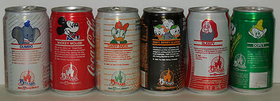 Title (ebay affiliate link): 6 DISNEY WORLD COKE SODA CANS 86 MICKEY/DOPEY/SLEEPY/DUMBO.DAISY HUEY,DEWY LOU