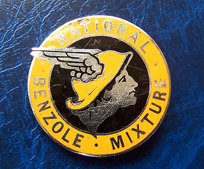 VINTAGE NATIONAL BENZOLE MIXTURE FATTORINI ENAMEL ADVERTISING BADGE PETROL / OIL