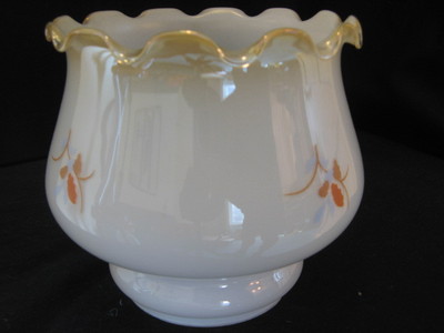OPAL TULIP WITH AMBER EDGE AND DECORATED 4 inch fit SHADE FOR OIL LAMP.