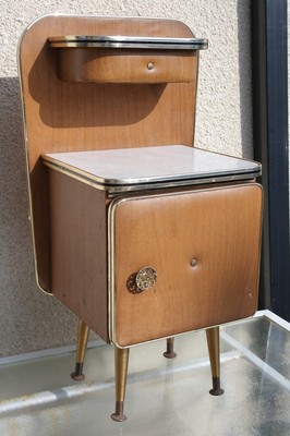 Title (ebay affiliate link): Vintage 1950's Bedside Table, With Formica Top & Splayed Legs, Retro 60s Cabinet