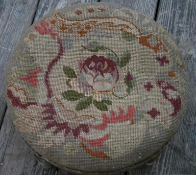 ANTIQUE FRENCH PETIT POINT NEEDLEPOINT FOOT STOOL