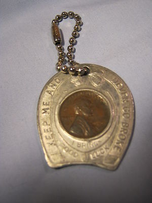 Title (ebay affiliate link): VINTAGE KEY CHAIN GOOD LUCK CHARM W/ 1949 PENNY INSIDE