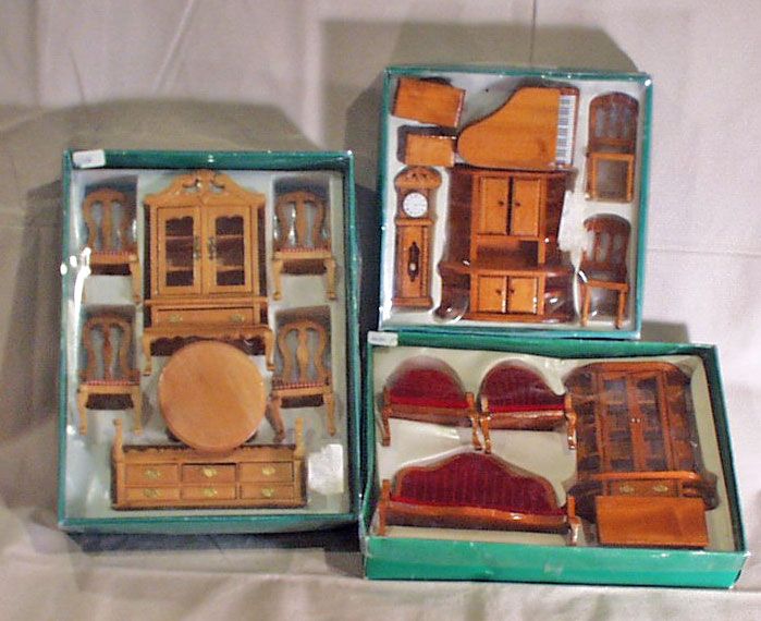 3 ROOMS WOOD DOLL FURNITURE IN BOX ANTIQUE STYLE MINT