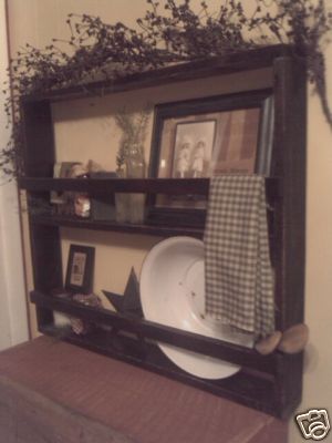 Title (ebay affiliate link): ~~Antique Primitive Bowl Rack Shelf w/ Tobacco Lathe~~