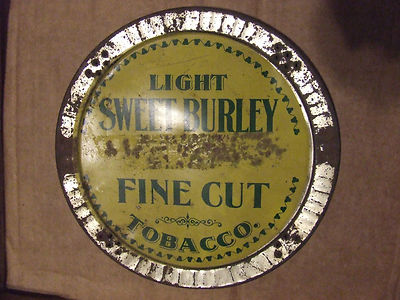 Title (ebay affiliate link): Vintage round tin Tobacco Sign Light Sweet Burley Fine Cut Tobacco Antique Rare