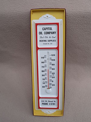 Title (ebay affiliate link): Fine Vintage 13" Salesman's Sample Capitol Oil Co. Advertising Thermometer & Box