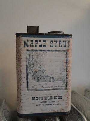 Title (ebay affiliate link): Vintage Maple Syrup Tin Bacon's Sugar House Jaffrey New Hampshire