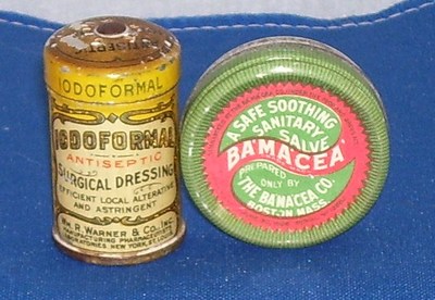 Title (ebay affiliate link): 2 OLD MEDICINE TINS:IODOFORMAL SURGICAL DRESSING-BAMACEA SANITARY SALVE
