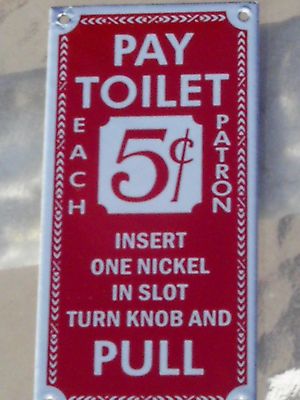 5 CENT SUBWAY BUS PORCELAIN PAY TOILET SIGN..NOS..MINTY