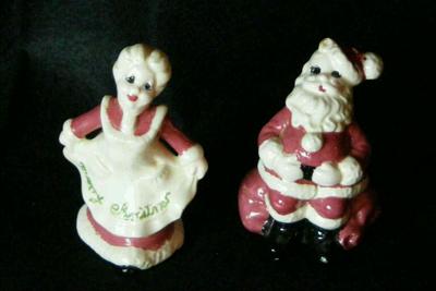 Vintage Old Mrs. Claus and Santa Salt and Pepper Shakers Christmas Figurines
