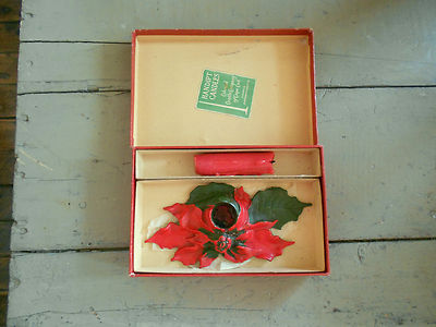 Title (ebay affiliate link): VINTAGE CAST IRON CHRISTMAS POINSETTA CANDLE HOLDER WITH ORIGINAL BOX DATED 1922