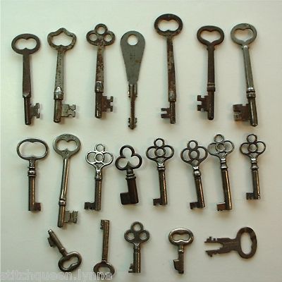 Title (ebay affiliate link): 20 Antique Old Skeleton Keys Furniture Cabinets Locks