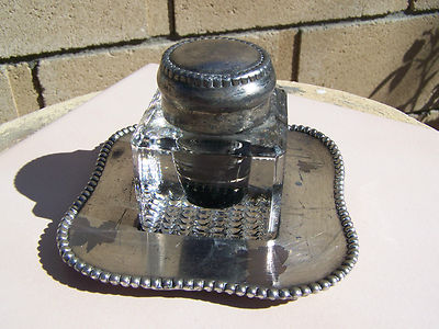 ANTIQUE SILVER PLATE INK WELL VERY NICE