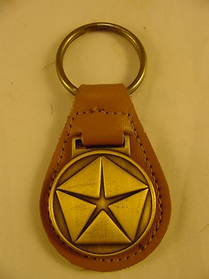 Title (ebay affiliate link): Vintage Chrysler Leather VIP Delivery Key Chain with Brass Medallion Fob Tan