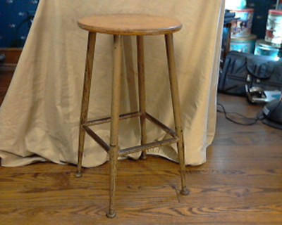 Title (ebay affiliate link): VINTAGE BROWN METAL 24" STOOL- WITH 13" WOOD SEAT- GREAT USED LOOK