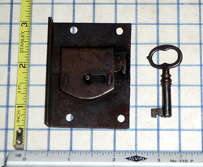 Antique Vintage old barrel skeleton key and lock furniture cabinet box desk
