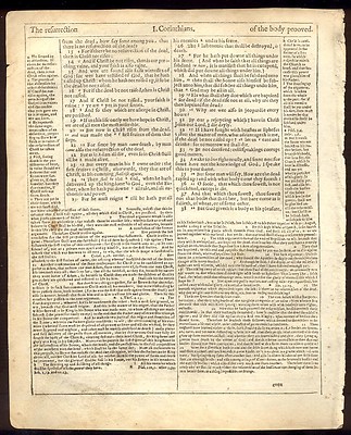 Title (ebay affiliate link): 1599 Geneva Roman Letter Bible Leaf/1ST CORINTHIANS/DEATH TO BE DESTROYED!